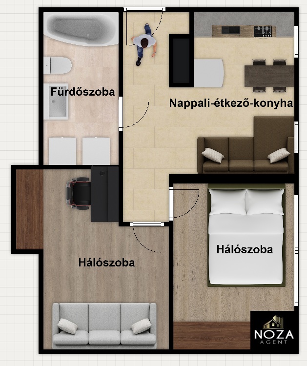 - nappali plusz 2 szobás